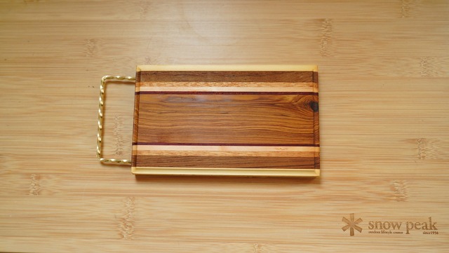 天然木を組み合わせた寄木細工のカッティングボードです。 木目の美しさを生かした温かみのあるデザインに、真鍮製のツイストハンドルを組み合わせ、上品でクラシックな雰囲気を演出しました。 チーズやパン、フルーツをのせれば、そのまま食卓を彩るサービングボードとしても活躍します。 真鍮の取手付きなので持ち運びやすく、インテリア性も高いため、キッチンに置いておくだけで空間を引き立てます。 ひとつひとつ木の表情が異なり、世界に同じものは存在しない一点もの。 大切な方へのギフトや、自分への特別なアイテムとしておすすめです。 ボードサイズ 長さ 190ミリ 横 110ミリ 厚み 19ミリ