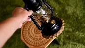 無骨なランタンをさらに引き立てる、ギア感あふれるランタンベース。