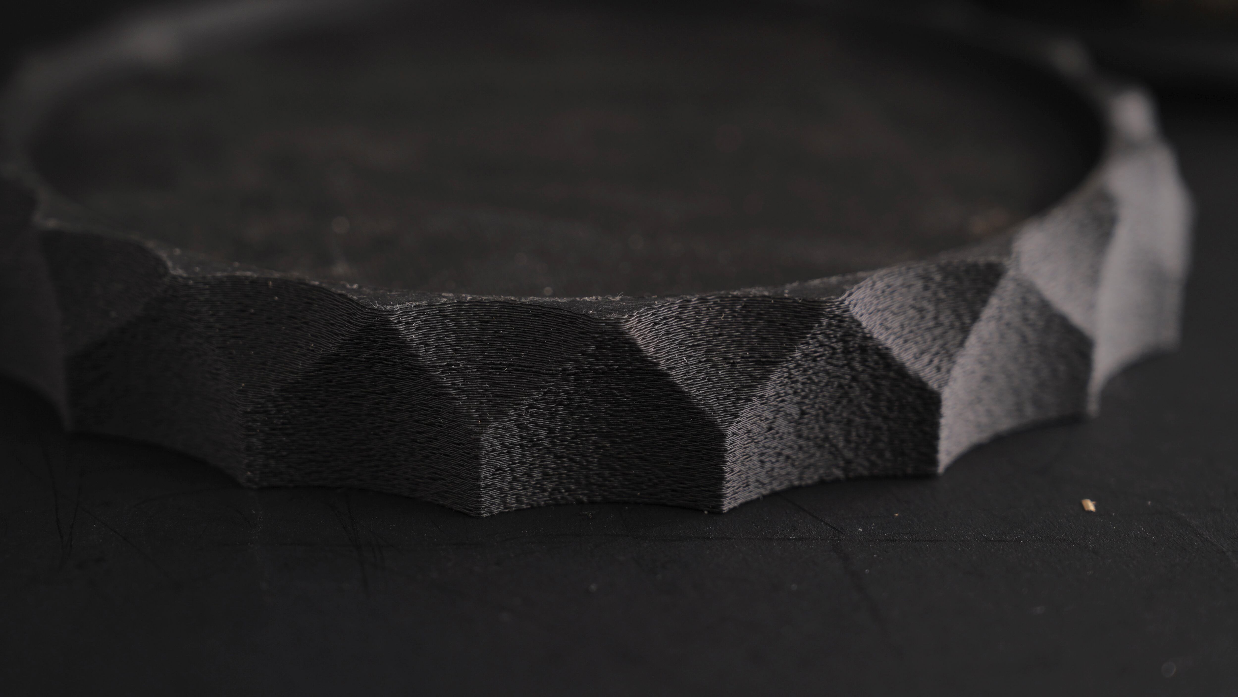 木工の伝統「名栗加工」をイメージした立体パターンを、PLA素材で再現。