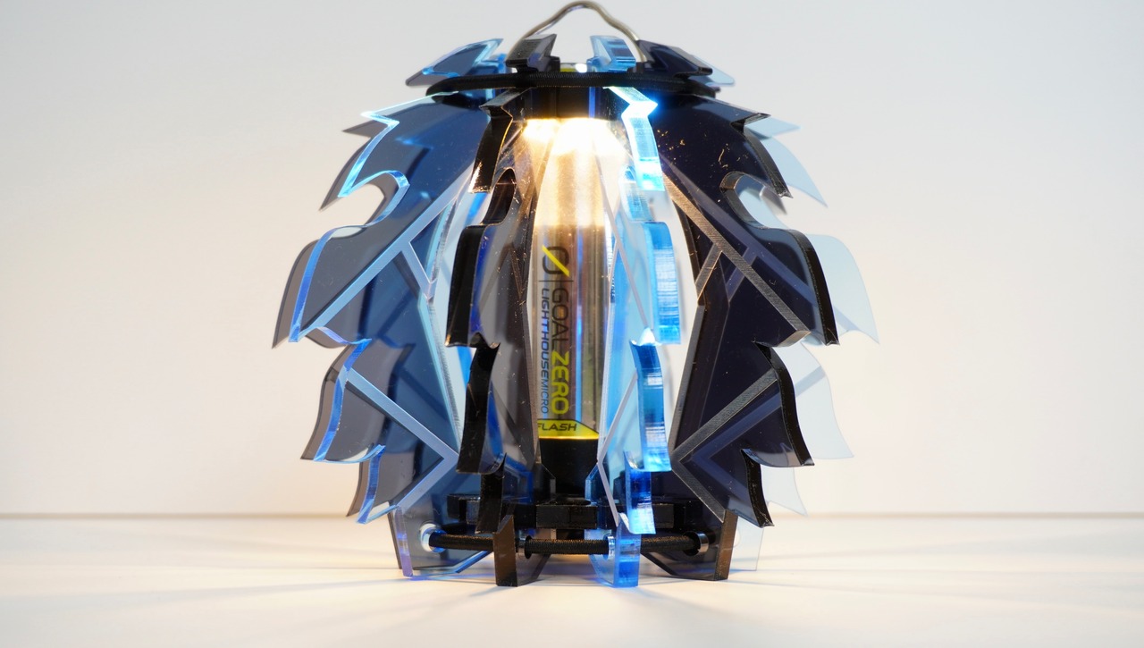 アクリルを使用することにより光を際立たせるとともに、複雑な造形を実現しています。複雑な形から繰り出されるさまざまな模様には人の心を落ち着かせる効果があります。光を灯すことでさらなる “ 癒し” 効果を発揮し、ランプによって生まれる光と影が、花のように壁や床に広がります。