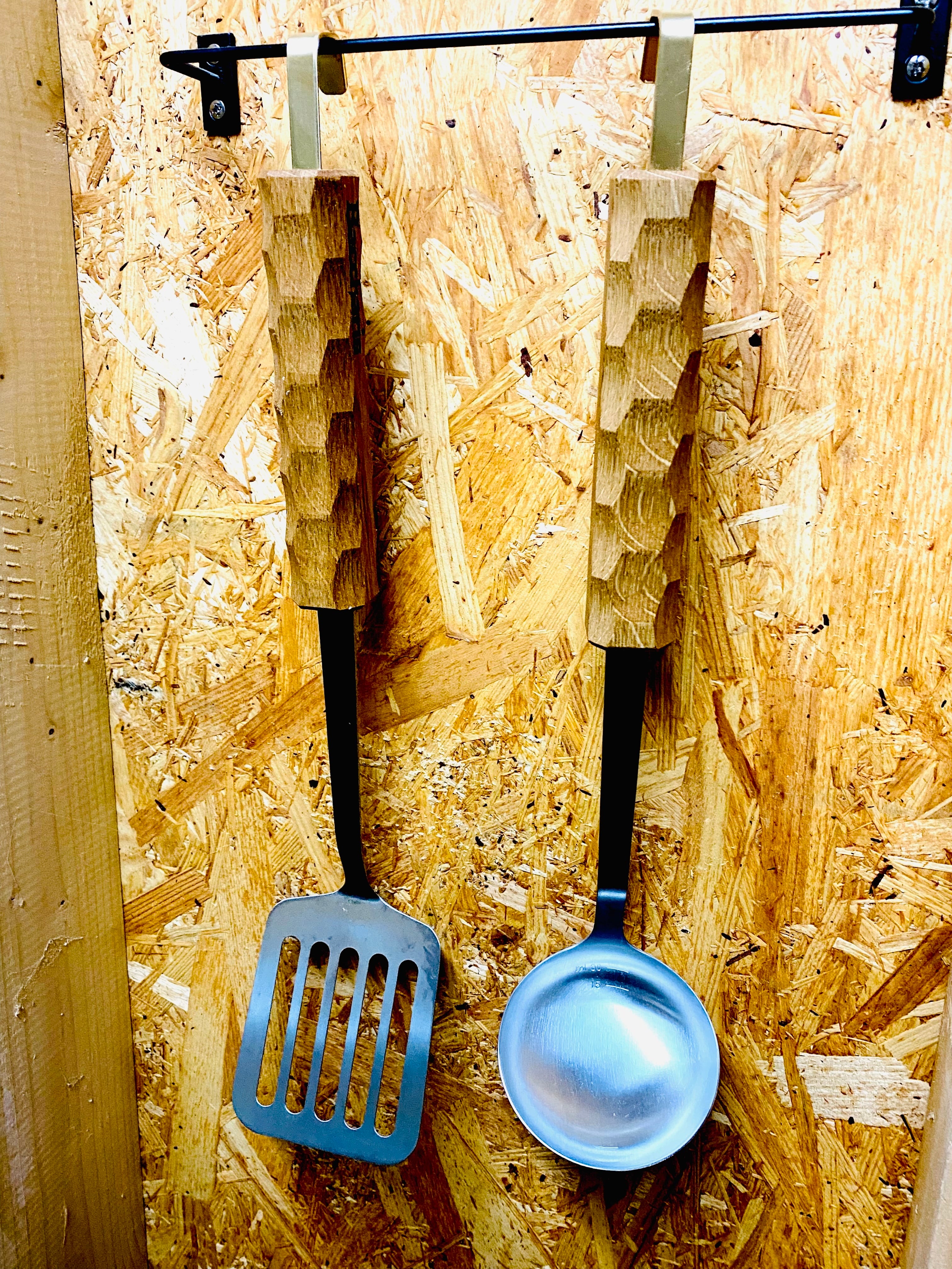 2mm厚の18-8ステンレスで創り上げたクッキングツール。オーク材を使用し、これまでのキッチンツールには無いワイルドさと頑丈さ、そして使い勝手のよさを追求したモデル。洗いやすい造りと使いやすい形状はアウトドアだけではなく、ご家庭のキッチンでも活躍します。滑りにくく、しっかりと握れるwoodハンドル。