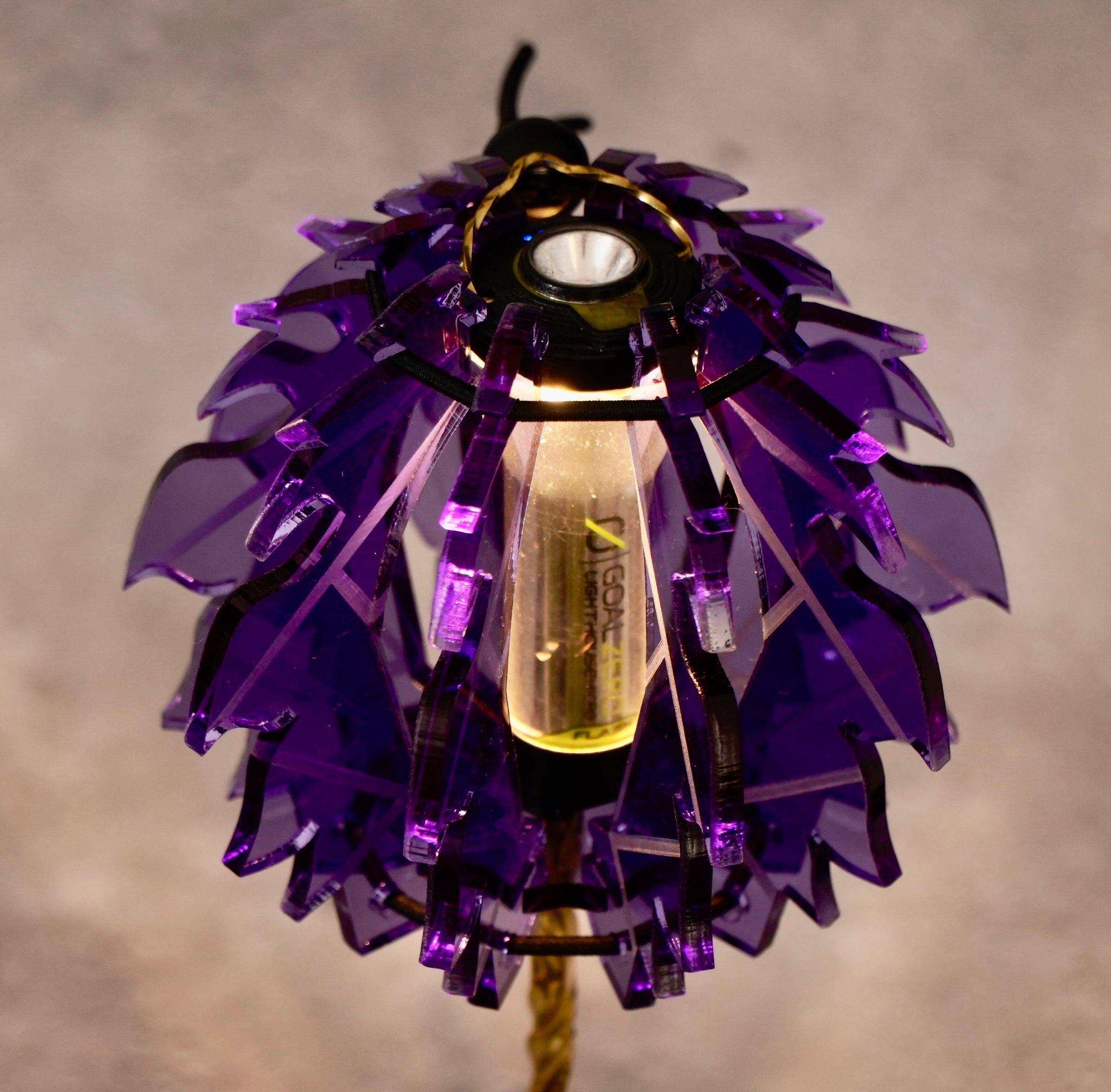 アクリルを使用することにより光を際立たせるとともに、複雑な造形を実現しています。複雑な形から繰り出されるさまざまな模様には人の心を落ち着かせる効果があります。光を灯すことでさらなる “ 癒し” 効果を発揮し、ランプによって生まれる光と影が、花のように壁や床に広がります。