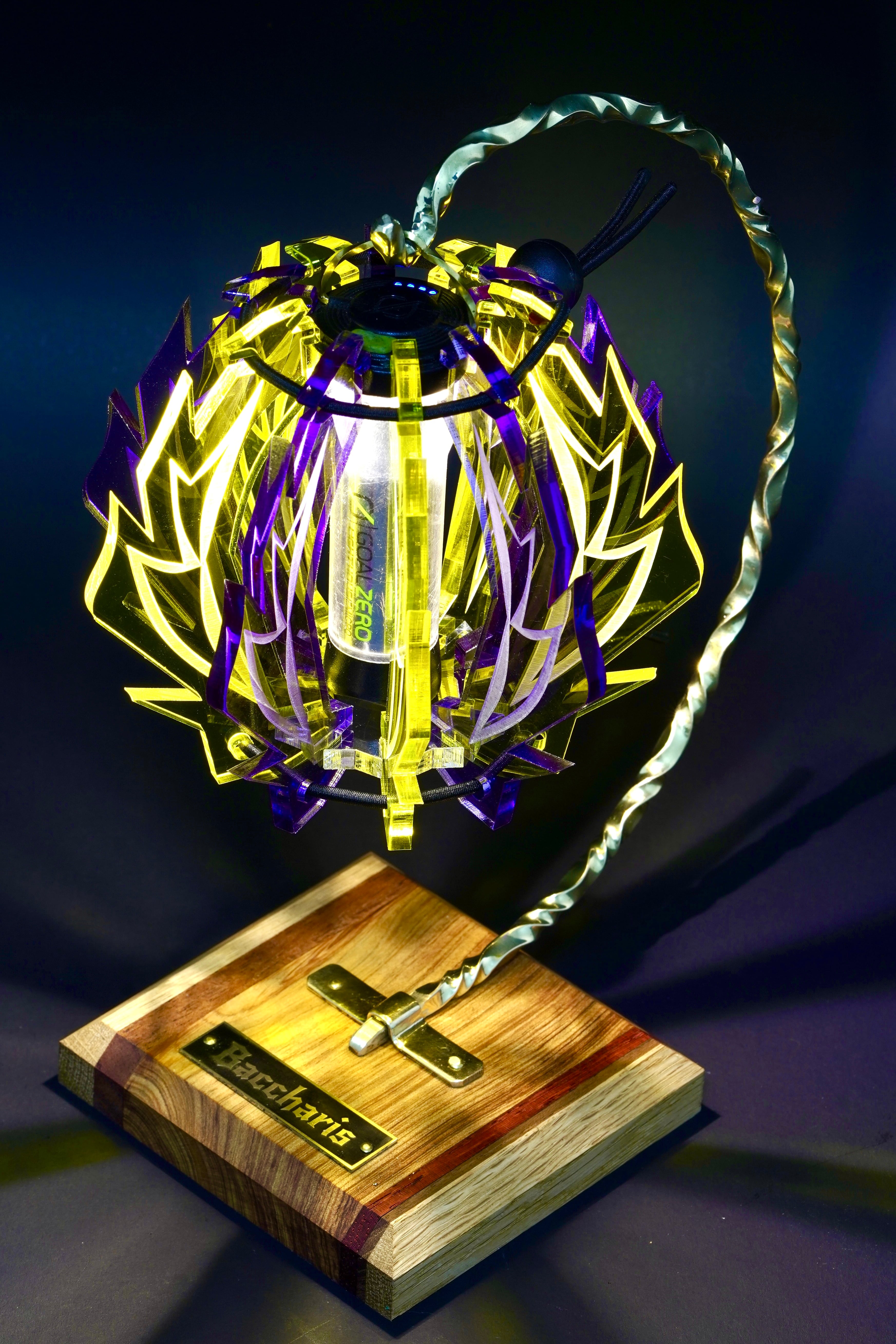 寄木と真鍮を組み合わせたランタンスタンドになります。